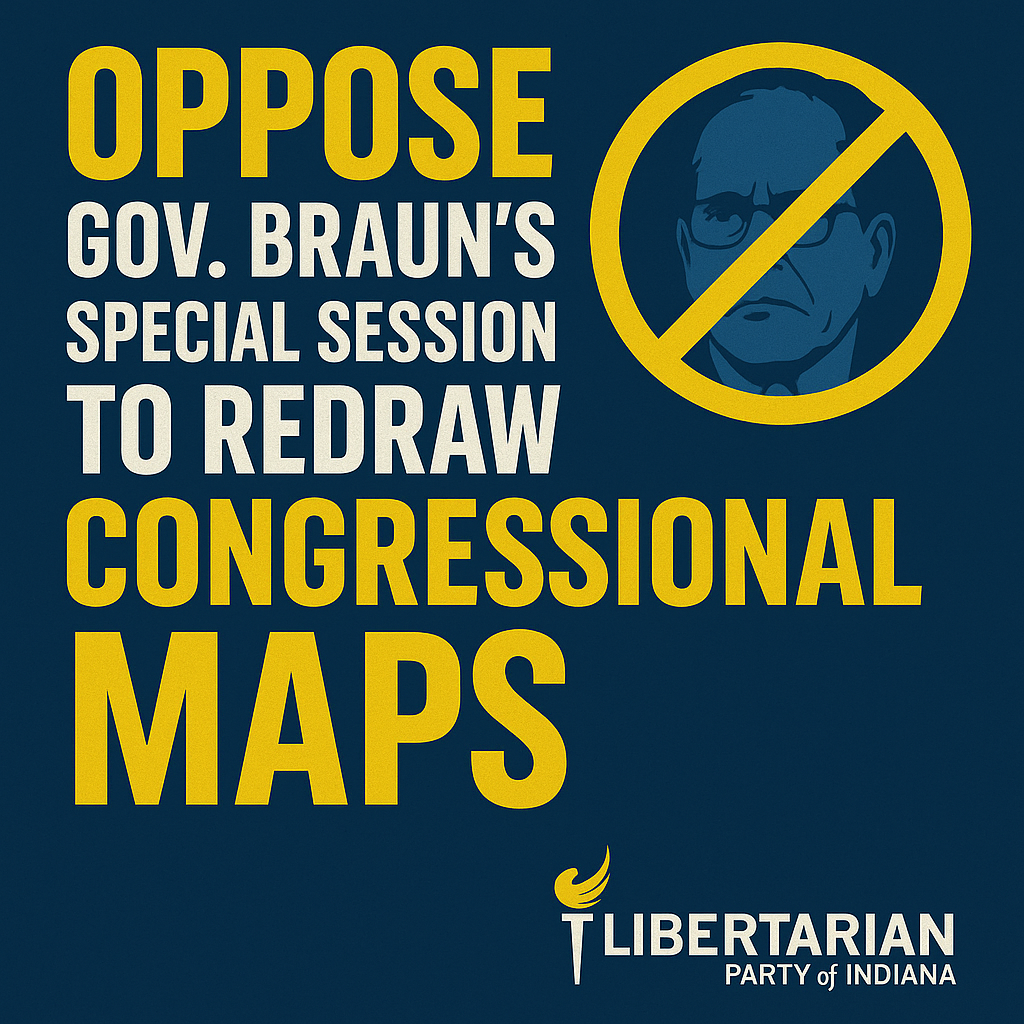 INDIANAPOLIS (Oct. 27, 2025) – The Libertarian Party of Indiana strongly condemns Gov. Mike Braun calling the Indiana General Assembly into a special session to serve Donald Trump’s desires for unchecked power. Calling for a mid-decade gerrymandering of already-partisan maps […]